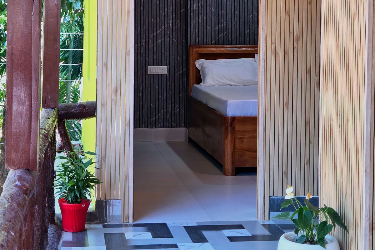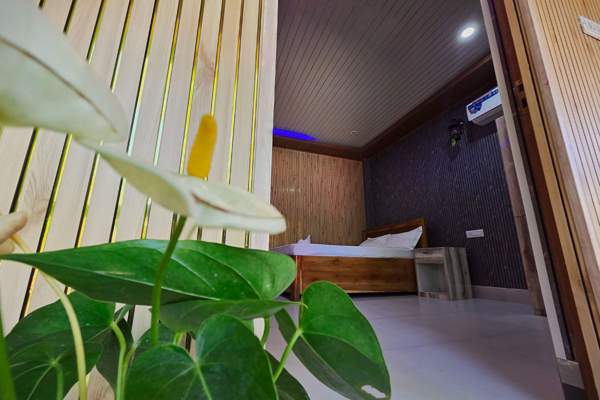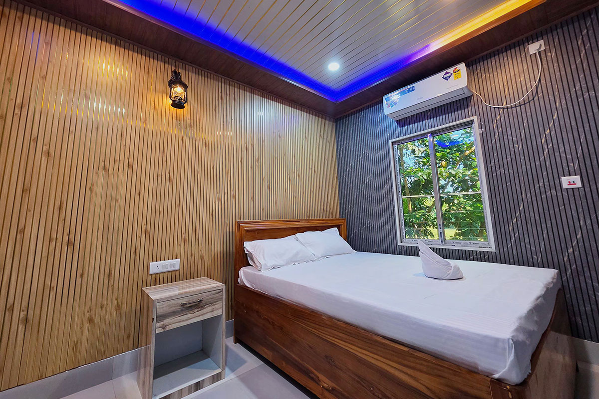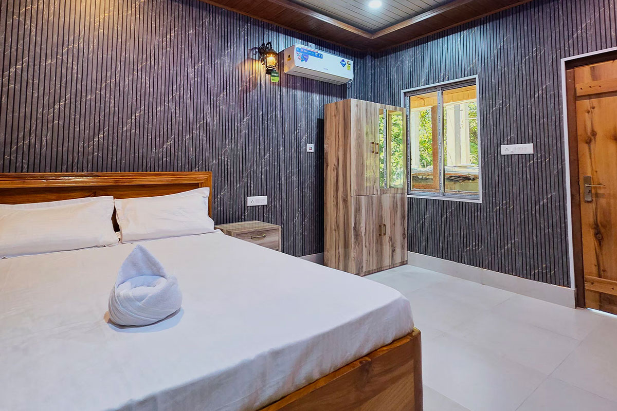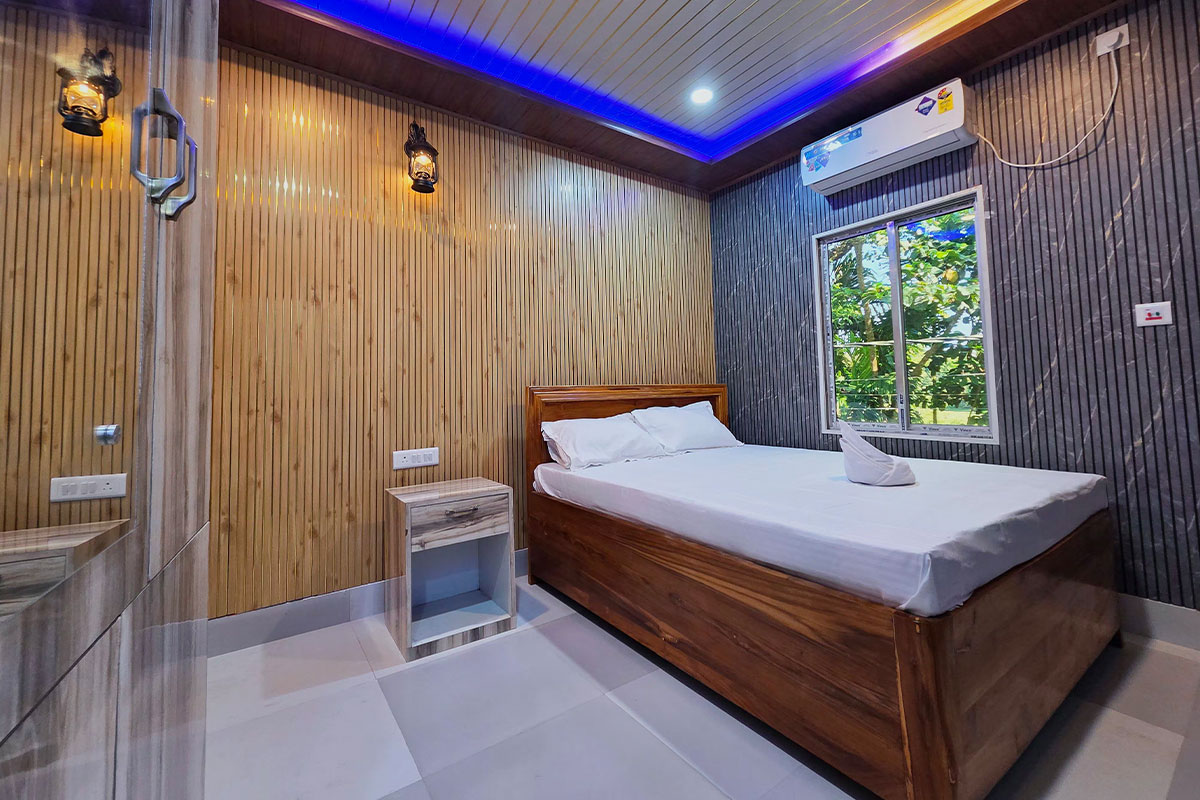 Step into our AC Deluxe Room, where simplicity meets sophistication. Designed with travelers’ comfort in mind, this room offers a cool, refreshing ambiance perfect for unwinding after a day of exploring the scenic beauty of Gorumara National Park. Enjoy the warmth of wooden interiors, a comfortable double bed, and modern amenities that make your stay both restful and memorable. Wake up each morning to a complimentary breakfast and the soothing sounds of nature all around - a serene escape for couples and small families seeking relaxation and peace.